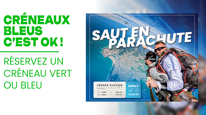 Avec ce billet, votre saut se fait un lundi ou vendredi. Le site est plus fluide qu’en week-end, l’équipe est pleinement dispo, et nous optimisons les rotations de l’avion sur ces créneaux pour vous proposer le tarif le plus doux. Idéal si vous pouvez vous libérer en semaine et que vous privilégiez le budget sans rien lâcher sur les sensations.